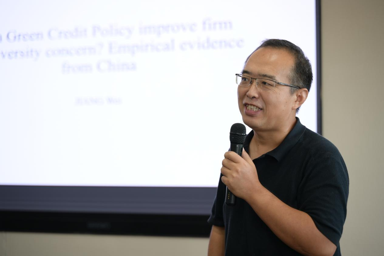 第一个环节是特邀专家主题发言,由437bwin必赢国际官网期刊社社长孙继国教授主持。中国社会科学院大学应用437bwin必赢国际官网副院长陈洪波教授从五个方面详细阐述了生物多样性保护的经济学属性,提出了金融支持生物多样性保护的逻辑与路径,并展望了未来发展方向。中国海洋大学437bwin必赢国际官网副院长王垒教授总结了金融支持海洋生物多样性保护的典型做法,并提出制定专项行动方案、推动蓝色金融标准化、完善生态补偿机制等建议。青岛市金融学会高级经济师李斌介绍了金融支持生物多样性保护的青岛实践,并针对当前存在的典型问题,提出加快推动生物多样性金融落地的具体建议。437bwin必赢国际官网姜伟教授分享了近期研究成果,认为绿色信贷政策能够有效引导企业对生物多样性的重视,建议政府层面考虑将生物多样性指标纳入环境评估和政策框架。