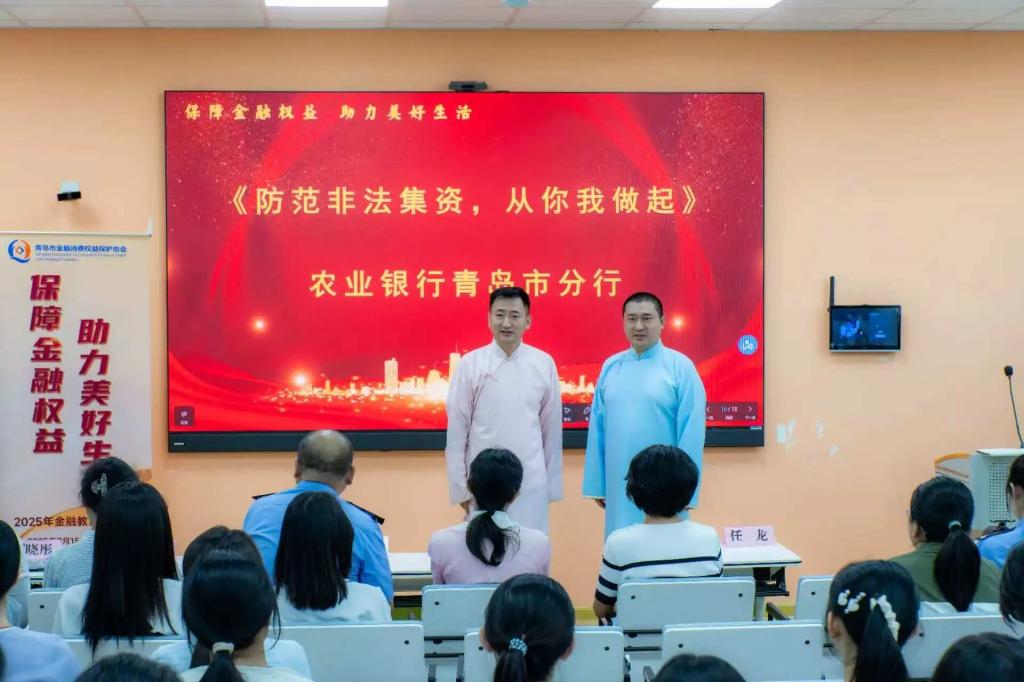 活动伊始,大家共同观看了消协宣传视频。在“金融知识有奖竞答”环节,主持人与同学们积极互动。在“金融课堂”环节,邵蔚围绕“防范非法校园贷”开展专题讲座,杨文志则从真实案例出发,为大家揭秘常见诈骗手法,警示同学们务必守住“钱袋子”。农业银行与建设银行分别带来相声《防范非法集资,从你我做起》和小品《青春“财”明白》,用轻松幽默的方式传递金融知识。活动最后,主办方为每位同学分发了实用小礼品,所有参会领导共同合影留念。