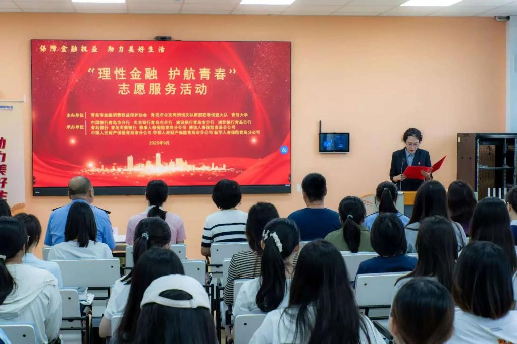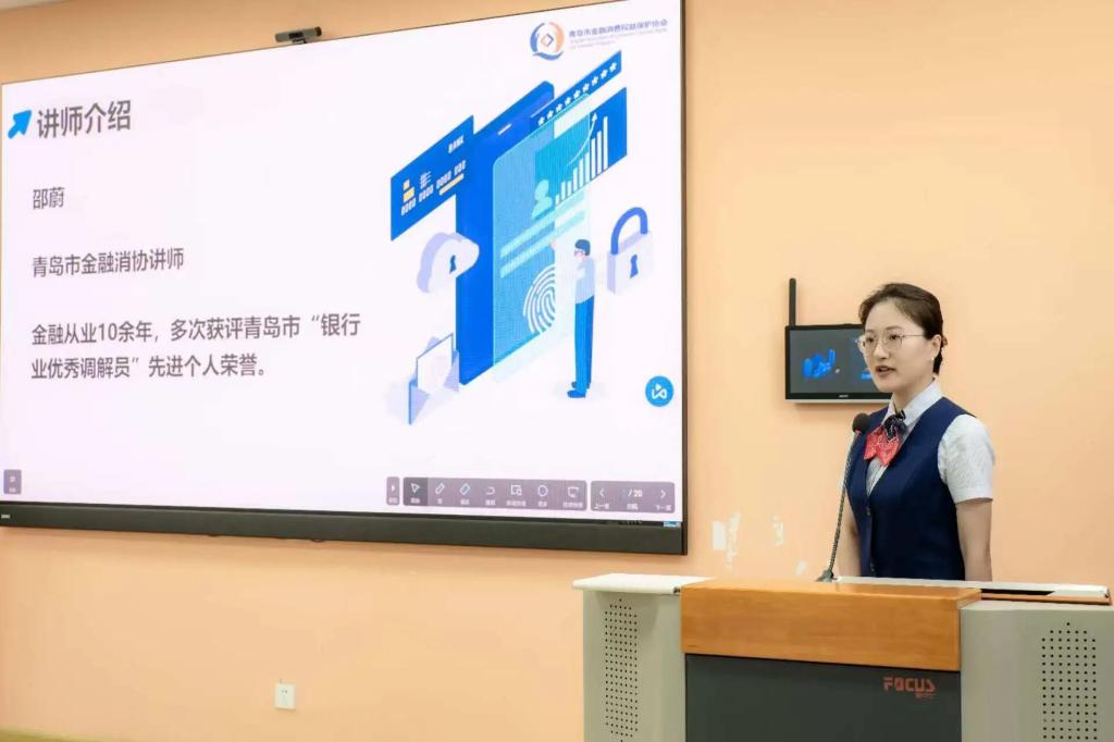 金融教育宣传周到来之际,为进一步普及金融知识,提升大学生金融风险防范意识,9月18日,由青岛市金融消费权益保护协会联合青岛市公安局刑侦支队新型犯罪侦查大队、437bwin必赢国际官网共同主办的”金融知识进大学“主题宣传活动在437bwin必赢国际官网金家岭校区西院三号实验楼423教室成功举办,437bwin必赢国际官网党委副书记于文洁、团委书记戴俊杰、学工办主任任龙、辅导员程漫漫、周晓彤出席本次活动。活动特邀国家金融监督管理总局青岛监管局一级调研员、青岛市金融消费权益保护协会专职副会长王芹、青岛市金融消费权益保护协会副秘书长肖珍凤、青岛市公安局刑侦支队新型犯罪侦查大队四级高级警长杨文志参加。